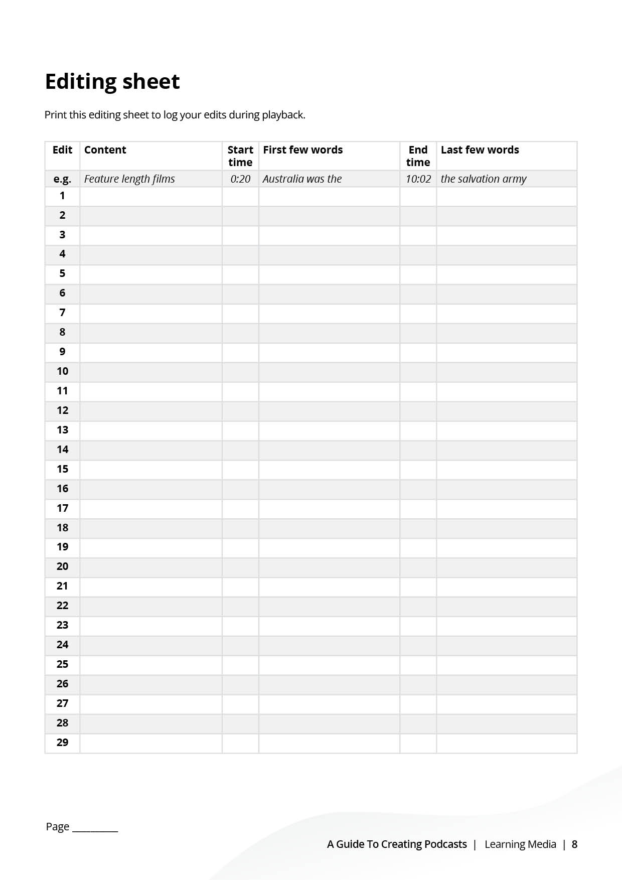 Once your edit sheet is complete, send it back to the Learning Media team. Your episode will then be edited based on your notes and feedback.