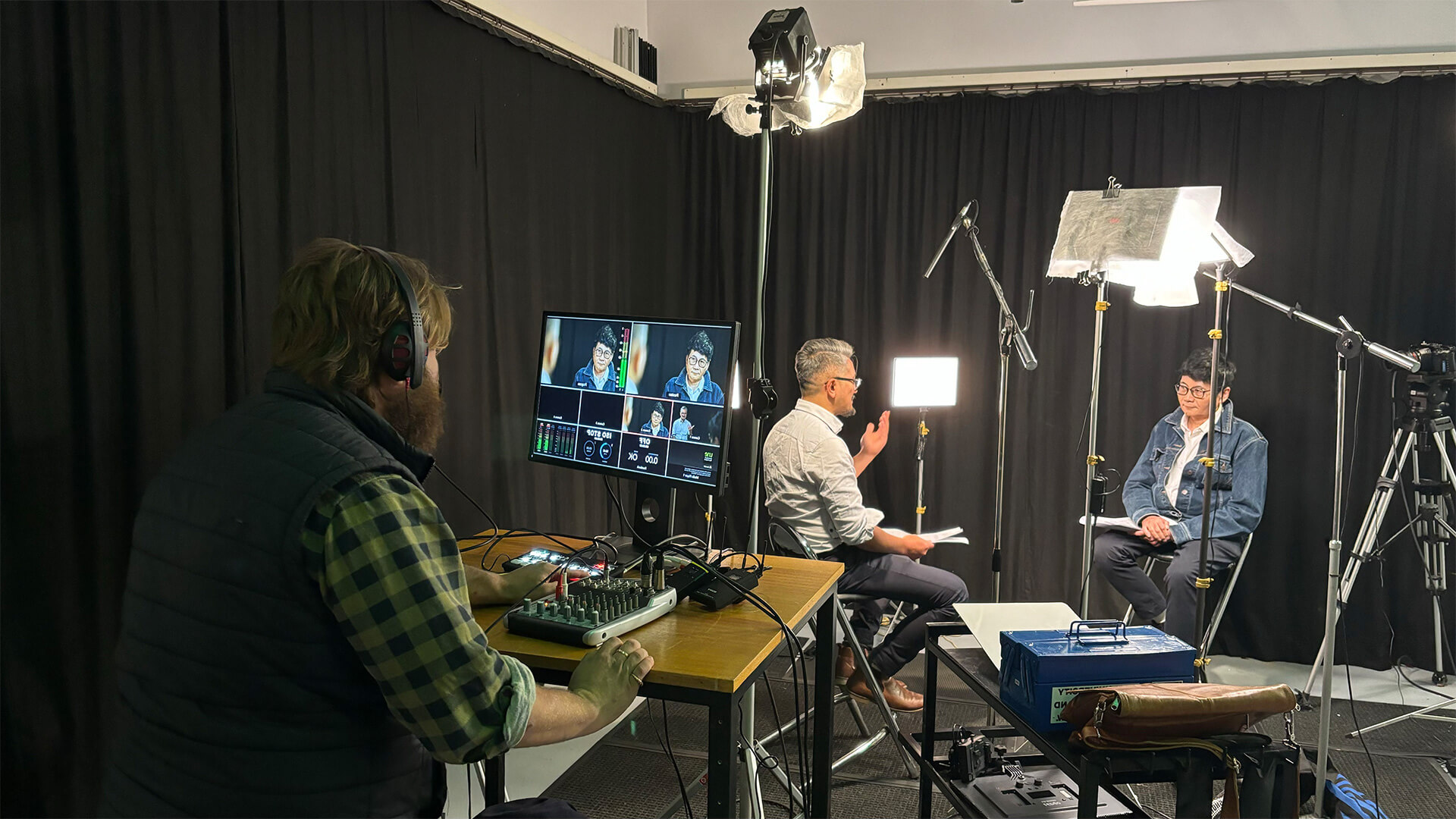 We’re continually exploring ways to better support UNE teaching and learning with video content – including expanding our creative environments beyond the core studios. One example is our Videography Studio initiative, where a previously underutilised space has been tested and shaped into a flexible recording environment capable of producing real teaching resources. This space complements our professional studios and helps meet the needs for larger group shoots and scenario‑based filming.